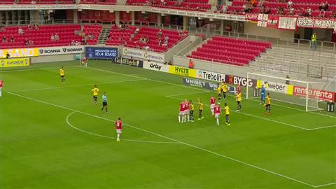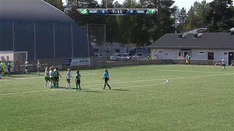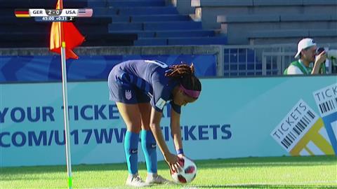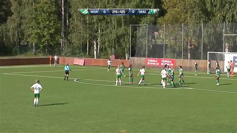 Höger hörna. Uppställning ”centralt tåg” med spelare från båda lag. Bra förebyggande snack av domaren bör efter detta ta utgångsposition lite mer framför spelarna för att visa att hon tänker följa upp sitt förebyggande. När hörnan väl är slagen justera sin position så hon kan se in mellan spelarna utan att vara skymd samt att inte gå så långt ner i straffområdet.
