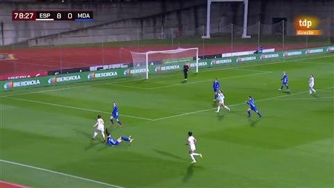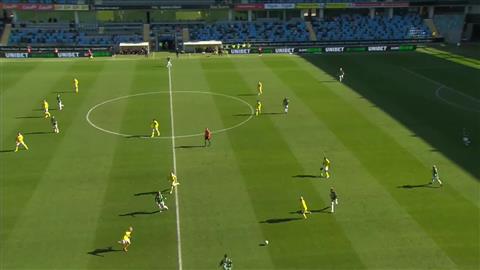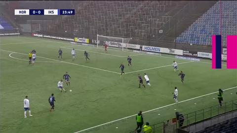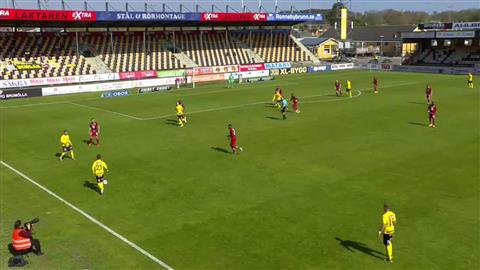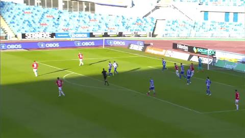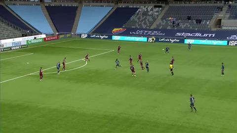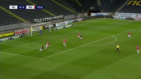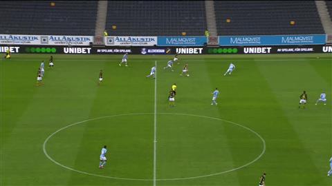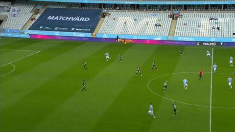 Det finns ingen anledning för domaren att gå ut vänster i det här läget, det är ganska uppenbart att han inte tänker driva in bollen i straffområdet utan förbereder ett inlägg domaren blir kvar i vänsterposition istället för att snabbt och explosivt ta sig in för att få närhet, vinkel och fri sikt till kommande situation i straffområdet.