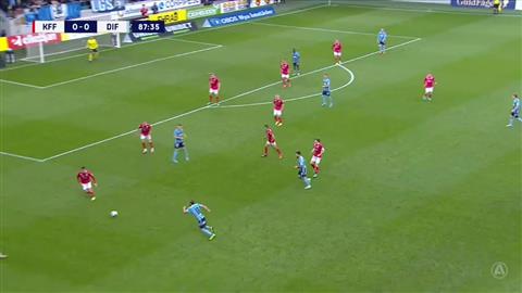 Kommunikation GĂ„ tillbaka O1 AD som är bäst placerad vill få till en avblåsning. Tyvärr blir kommandot bara "Ta den, ta den" och domaren får själv räkna ut att det handlar om en vårdslös tackling och andravarning. Förklaringen kommer senare. Fjärdedomaren går in mitt i dialogen och pratar om att det finns personer som vill komma in för behandling. Här behöver man sortera så varje sak får sin tid. O2 AD på andra sidan säger till domaren som är nära att "du har död boll". Domaren uppfattar inte var orden kommer ifrån och tror att det är AD som är inblandad i situationen som tycker att bollen är död. Var försiktig med vad du säger och när det sägs. O3 Domaren pekar tydligt ut den felande spelaren som ska ha varning senare. Därefter börjar teamet upprepa nr 9 för att det inte ska glömmas bort. O4 AD och fjärdedomare hjälper domaren att hålla koll på spelare som springer från långt håll för att prata med domaren. Även att en spelare som han skickat bort återvänder för att prata igen. O5 Fjärdedomaren stöttar upp med bedömningen att detta ska vara varning. O6 Fjärdedomaren ger en tydlig beskrivning av vad som sker istället för att bara pumpa "blås, blås, blås". Här får domaren chansen att släppa fördel om den skulle uppstå även om kanske inte utfallet blev det bästa O7 AD på andra sidan säger från svart. Aktiv AD avvaktar först men verkställer sedan offsiden. Lite diskussion om flaggan skulle kommit tidigare eller inte. O8 Domaren uppfattar först flaggan ifrån assisterande domaren som en offsideavvinkning men efter att AD pumpat inne, inne, inne så blir det tydligt O9 AD pratar förebyggande så att hela teamet är beredda på den offsideavvinkning som sedan kommer O10 AD uppmärksammar domaren på att bollen är över sidlinjen O11 AD säger avvaktande för att det finns en spelare i offsideposition. När hon sedan inte löper mot bollen utan avbryter sin löpning verkställs inte offsiden. En ledare som inte kan regeln kommer in via fjärdedomarens headset O12 Här saknas det helt kommunikation mellan domarna. Detta är antingen inkast eller frispark men helt plötsligt blir det helt tyst när kommunikationen som mest behövs. O13 Domaren försöker agera proaktivt och vara tydlig med att bollen kommer från blå men AD hör inte uppmaningen och vinkar istället och domaren får ta till tecken för att ta ned AD och fortsätta spelet. Här behöver AD vara mer uppmärksam på input som ges O14 Enkel offside, AD pumpar och domaren verkställer O15 Fjärdedomaren ger sin input att målvakten krockar med sin egen spelare och ramlar och tappar bollen. Även om domaren har en tydlig uppfattning är det bra att förstärka O16 AD uppmärksammar två spelare i offsideposition när bollen slås. Men domaren kan korrekt stötta i bedömningen att ingen av dom stör målvakten och målet kan godkännas O17 Domaren säger vem som spelar bollen och AD kan då verkställa offsiden O18 AD hamnar nära situationen och domaren ser ojustheten. För att bättre som team sälja beslutet så uppmanar domaren AD att också vinka för frisparken och utifrån ser det väldigt samspelt ut O19 AD Äger beslutet O21 O22 O23 O24 O25 O26 O27 O28 O29 O30 O31 O32 O33 O34 O35 O36 O37 O38 O39 O40 O41